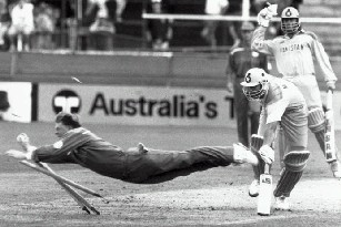 Jonty Rhodes soars to fame in the 1992 World Cup.