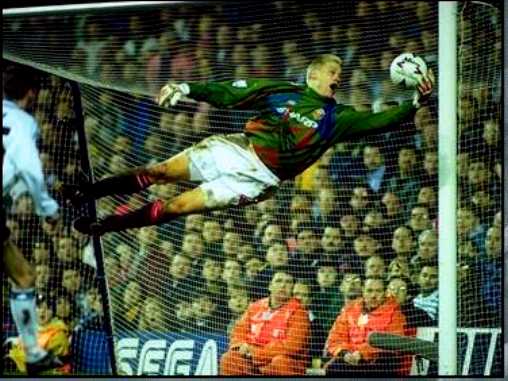 Peter Schmeichel pulls off an amazing save against Tottenham.