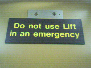 His pursuer – still in pursuit – wasn’t one for stairs or walking, but his preferences couldn’t be accomodated: he was slowed down by the threat of a power failure