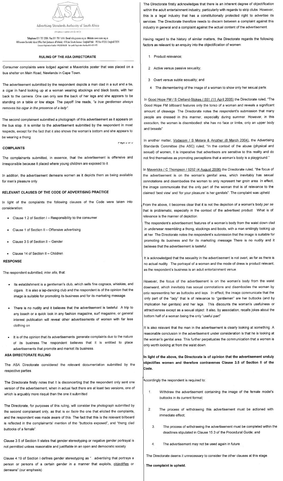 Fortunately, others shared this outrage, and the Advertising Standards Authority received a number of complaints about the offending posters. (Complaints can be lodged at http://www.asasa.org.za/Complaint.aspx)