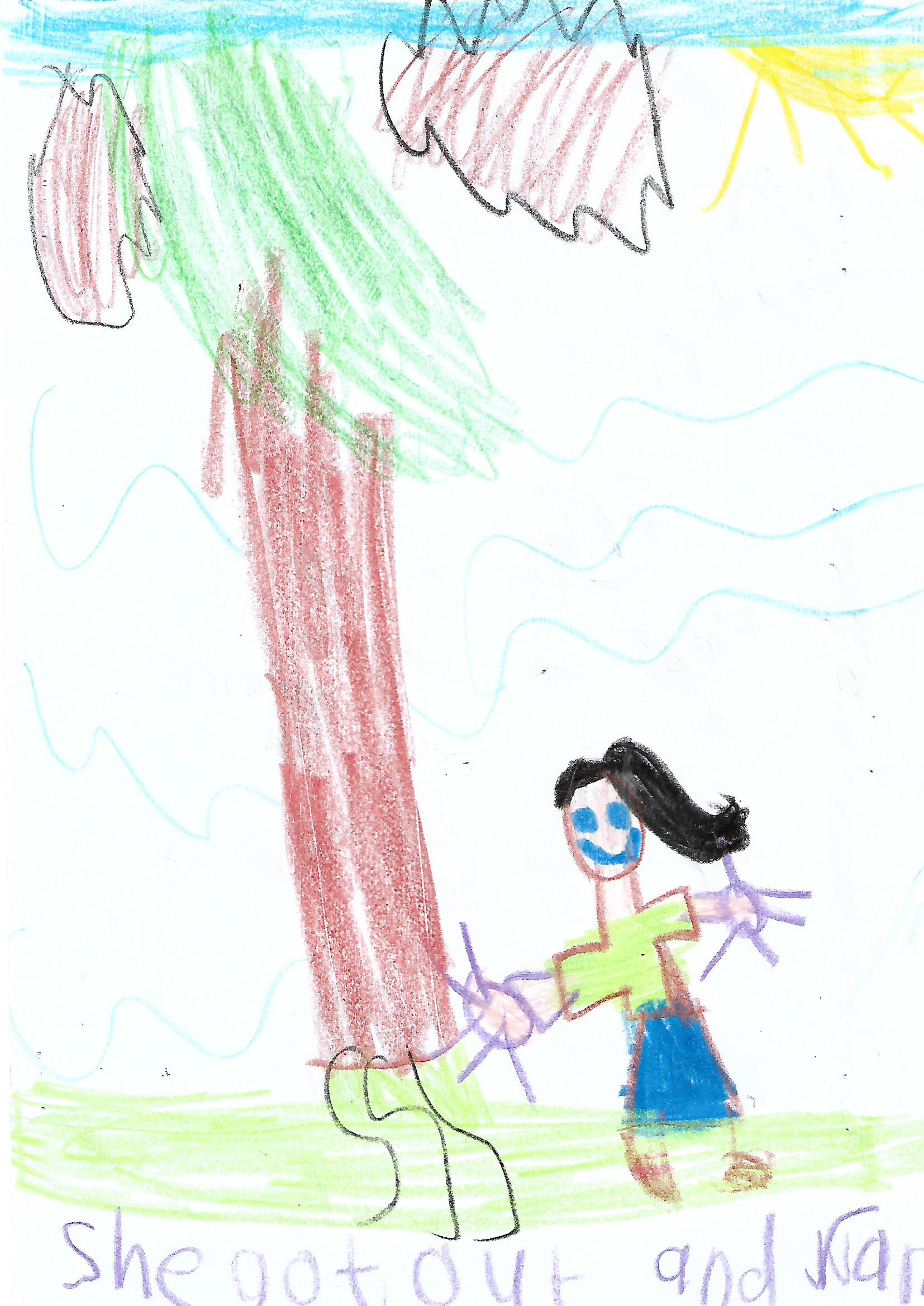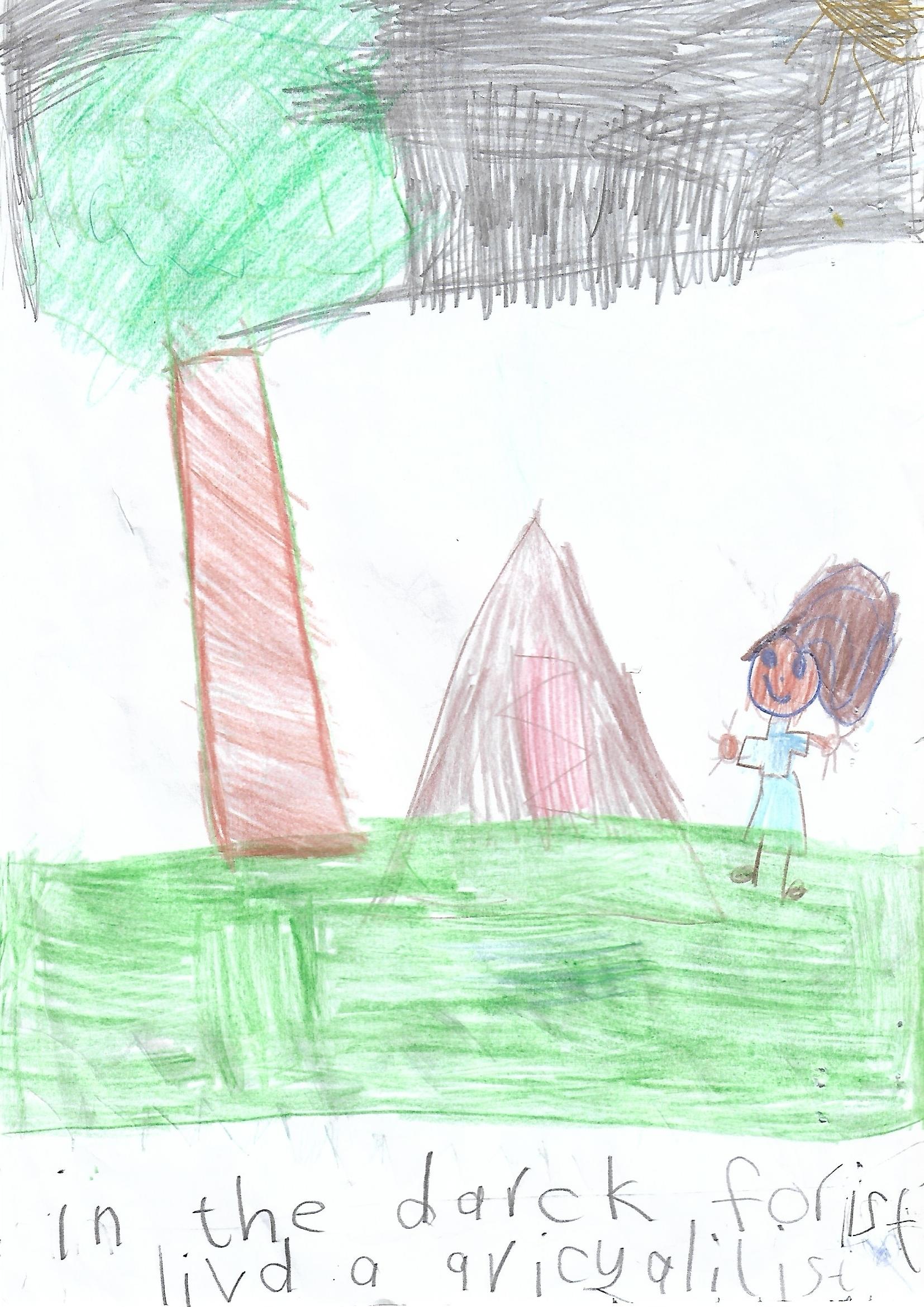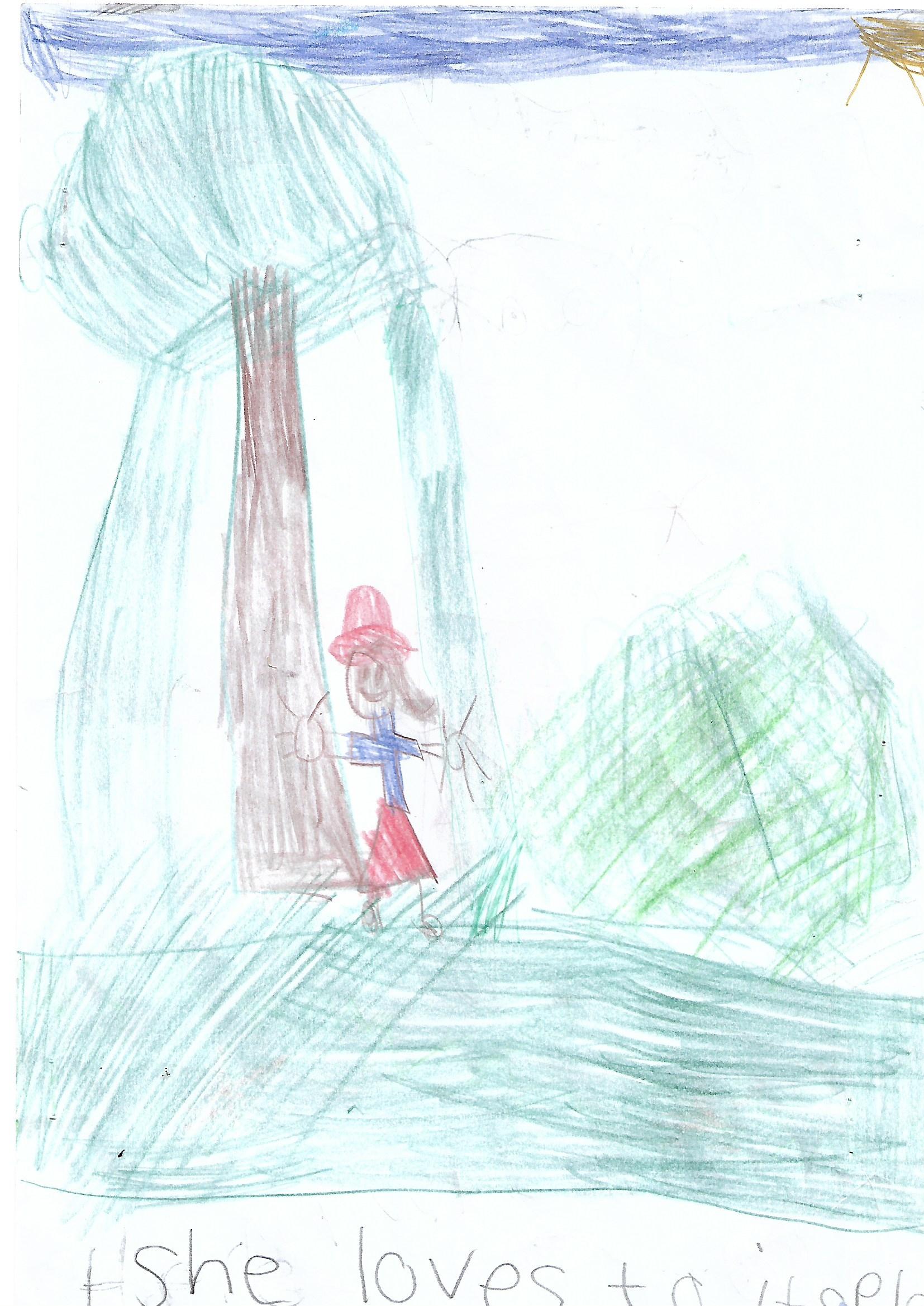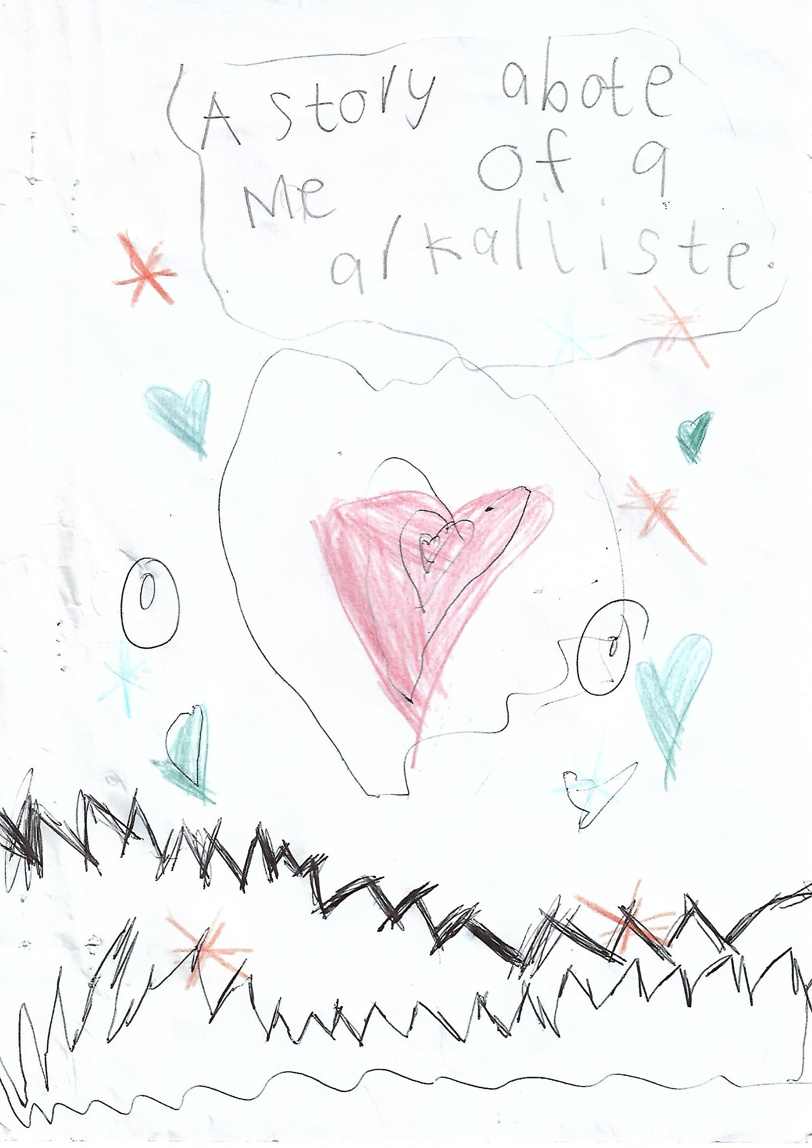 My grade 2 daughter’s first handmade book – written on her own. I’ve translated since the spelling isn’t so good at times. The un-coloured ones were late additions.