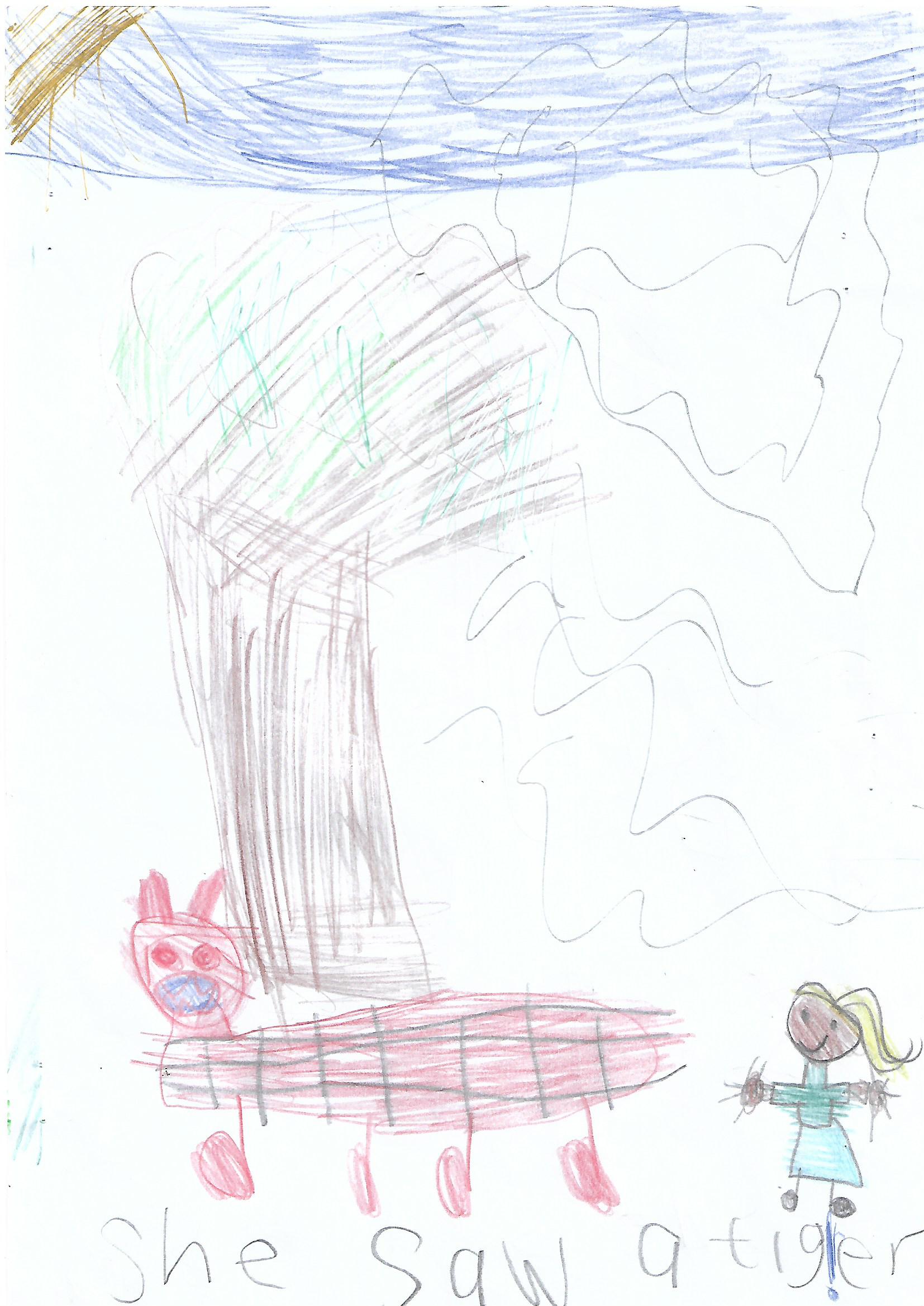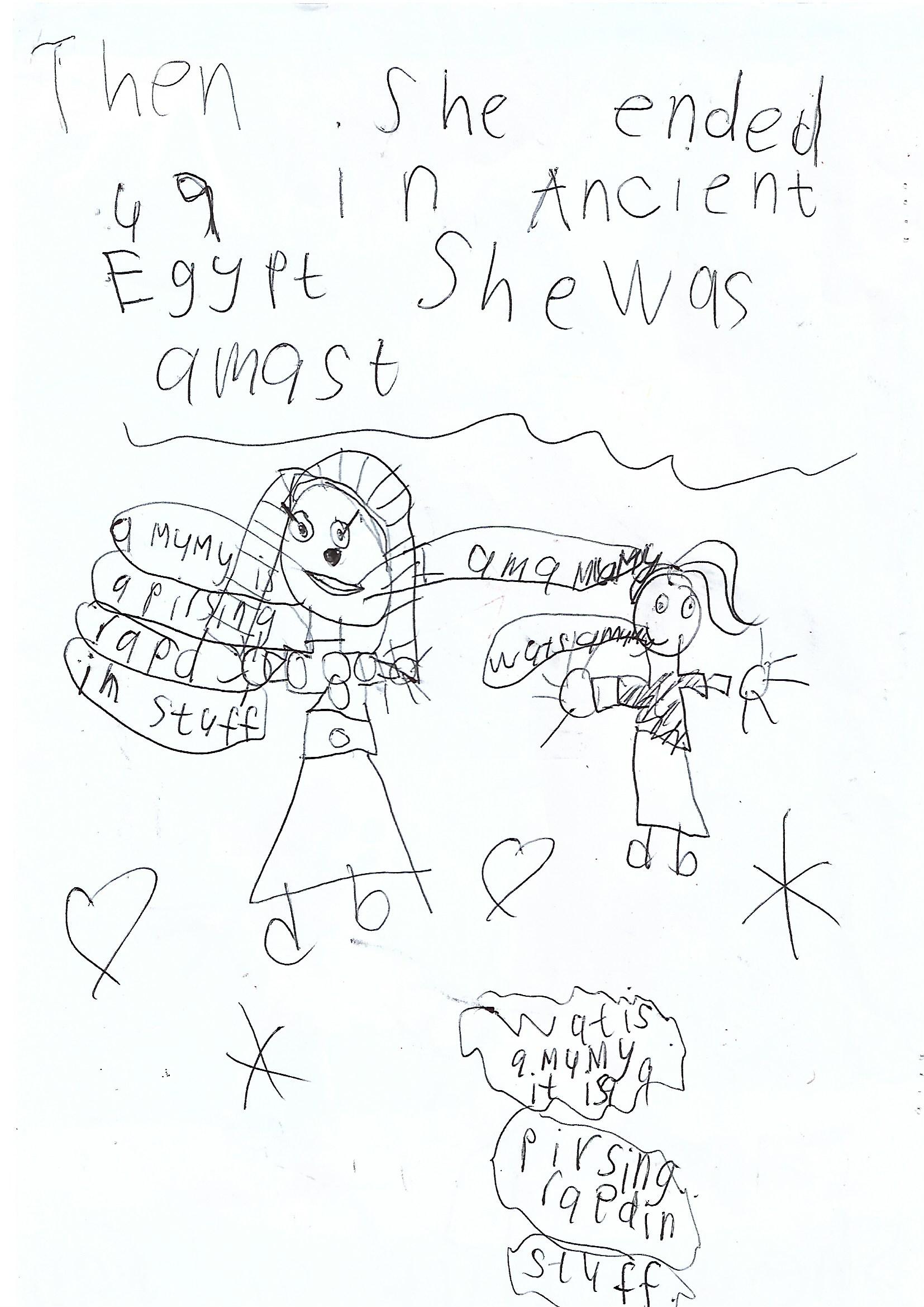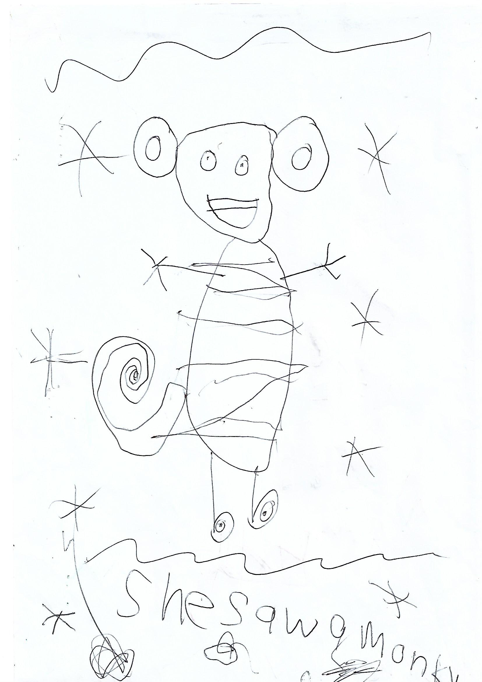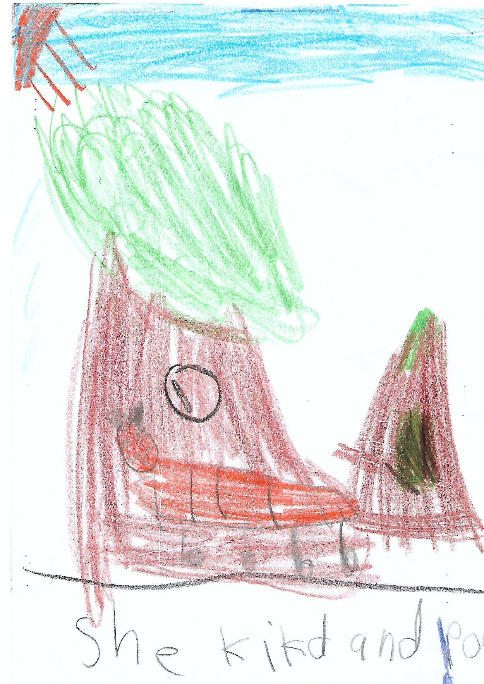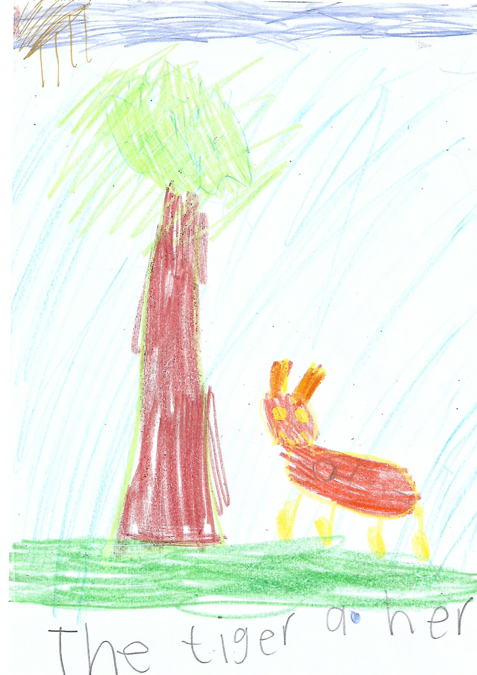 My grade 2 daughter’s first handmade book – written on her own. I’ve translated since the spelling isn’t so good at times. The un-coloured ones were late additions.