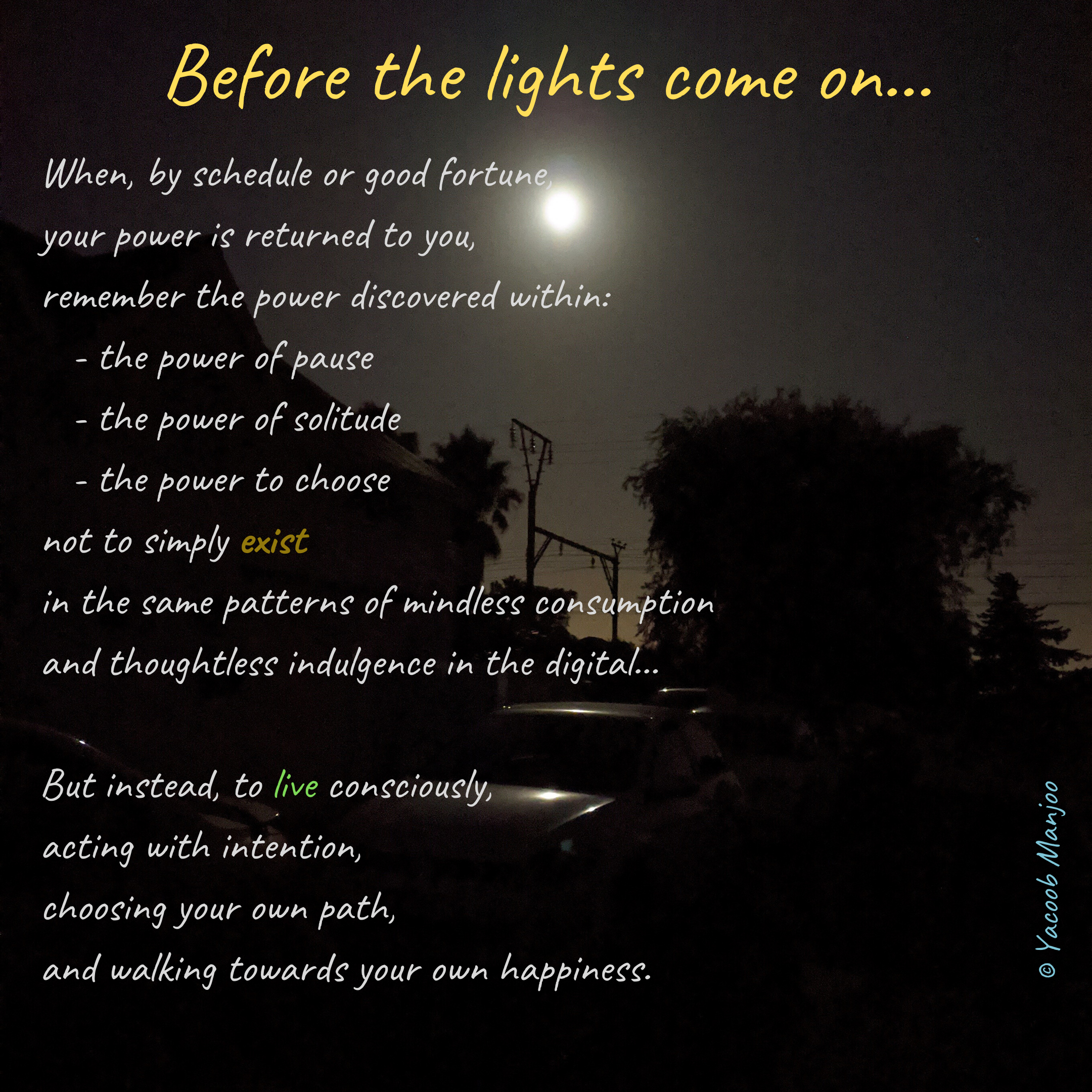 South Africa is once again in a state of ongoing power cuts – euphemistically referred to as ‘load shedding’. As a follow-up to last year’s Powerless, the electricity-free nights have stirred up more thoughts…