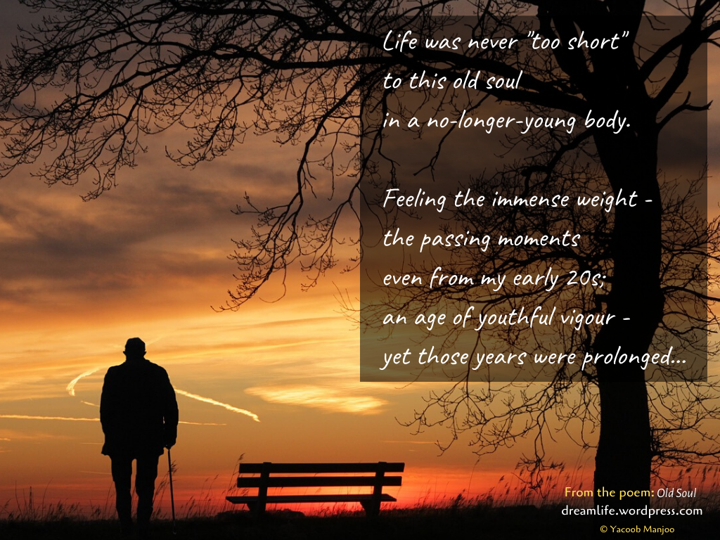 Life was never "too short" to this old soul in a no-longer-young body. Feeling the immense weight - the passing moments even from my early 20s; an age of youthful vigour - yet those years were prolonged...