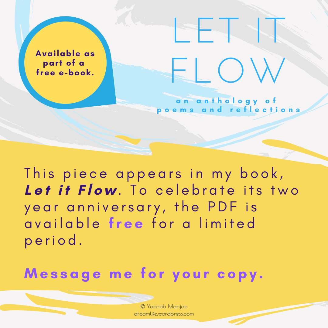This piece is from my book – Let it Flow. In celebration of its 2-year anniversary, I’m giving away the PDF for free for a limited period. If you’d like a copy, please email me or leave a comment below.