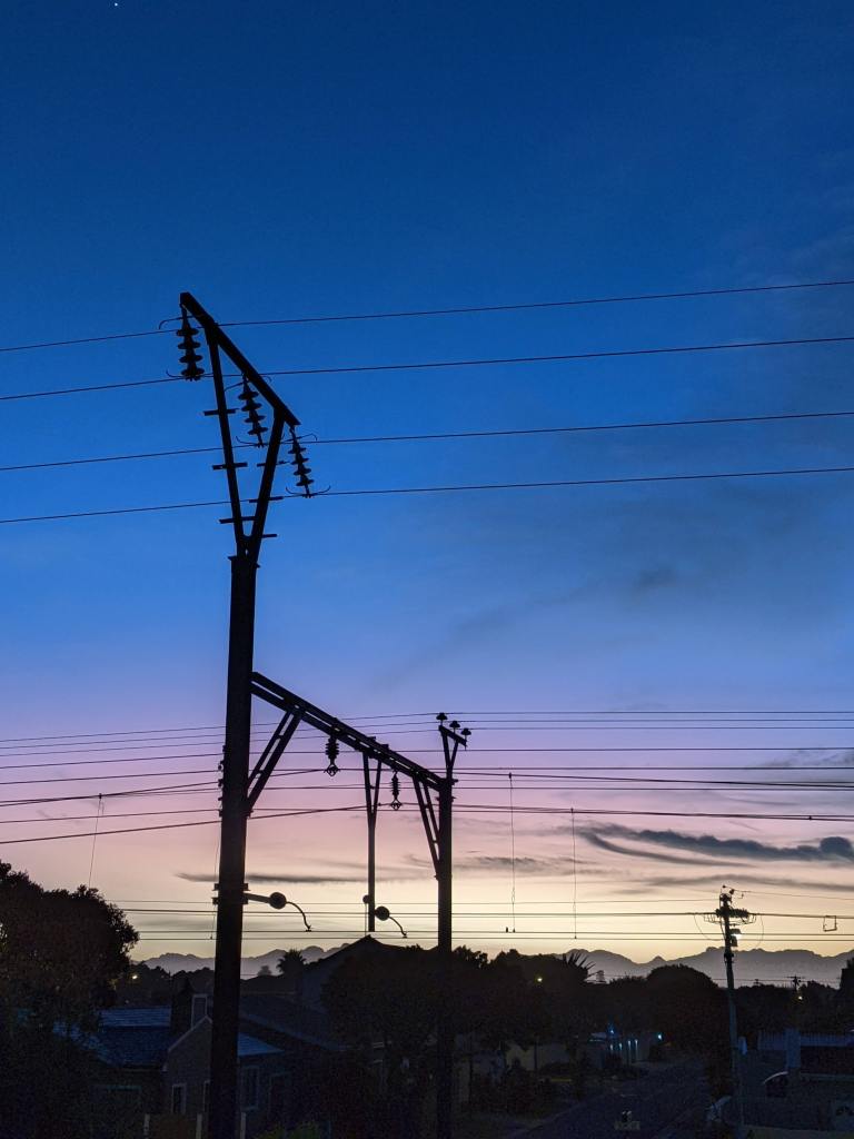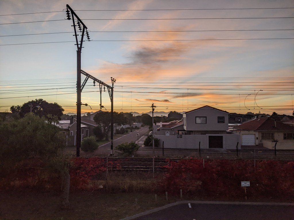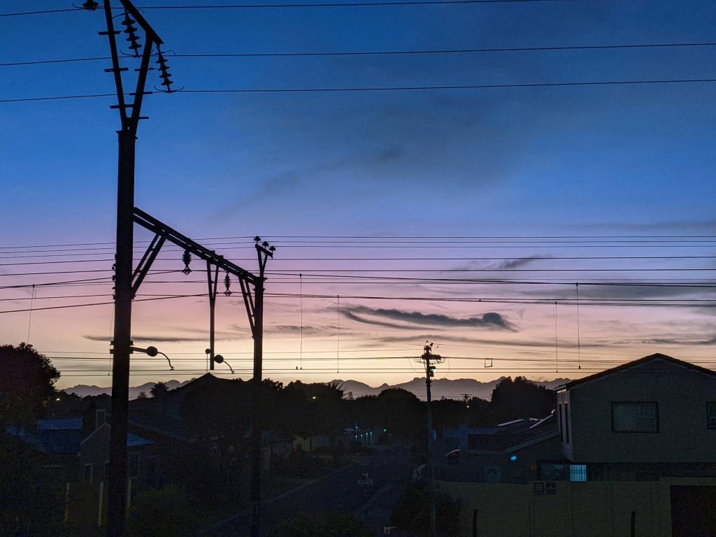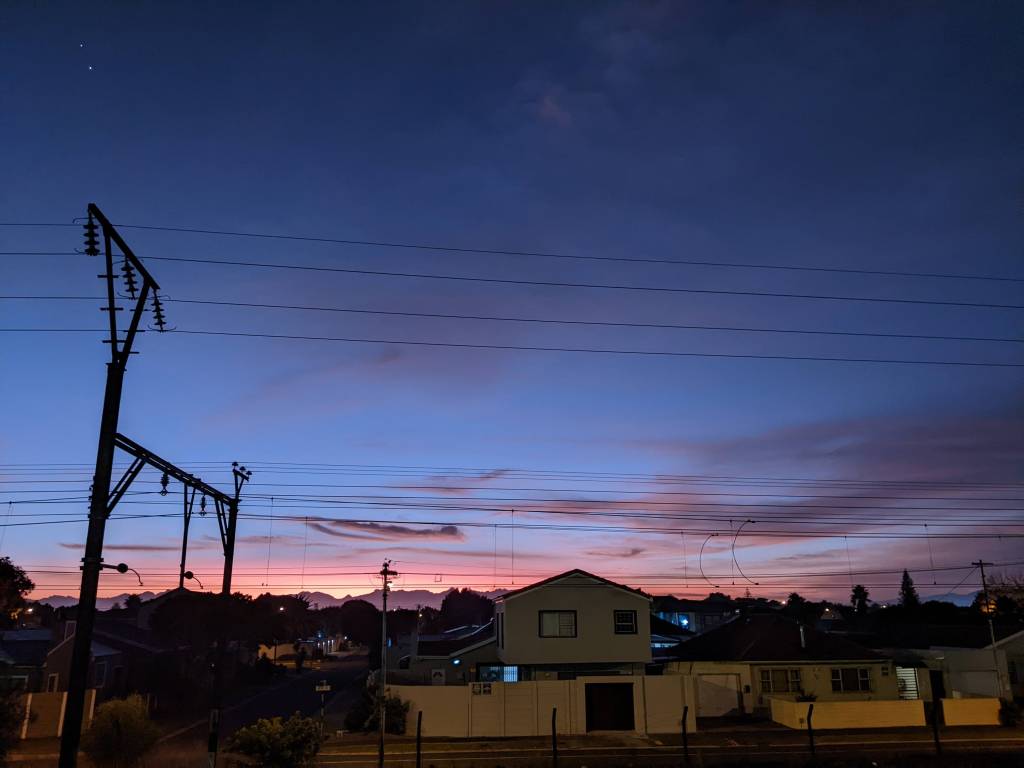 The dusty pink and blue sky gives way