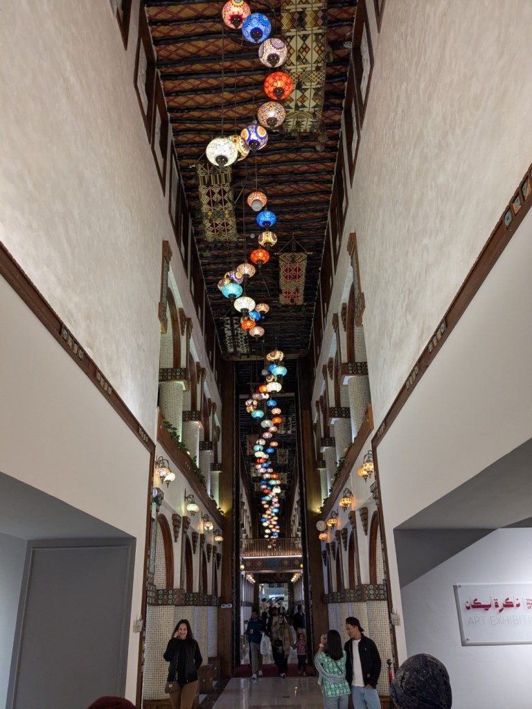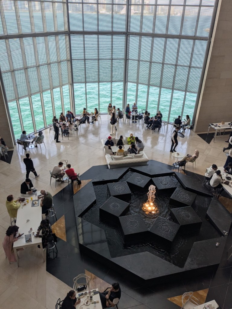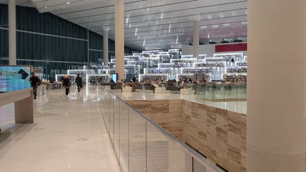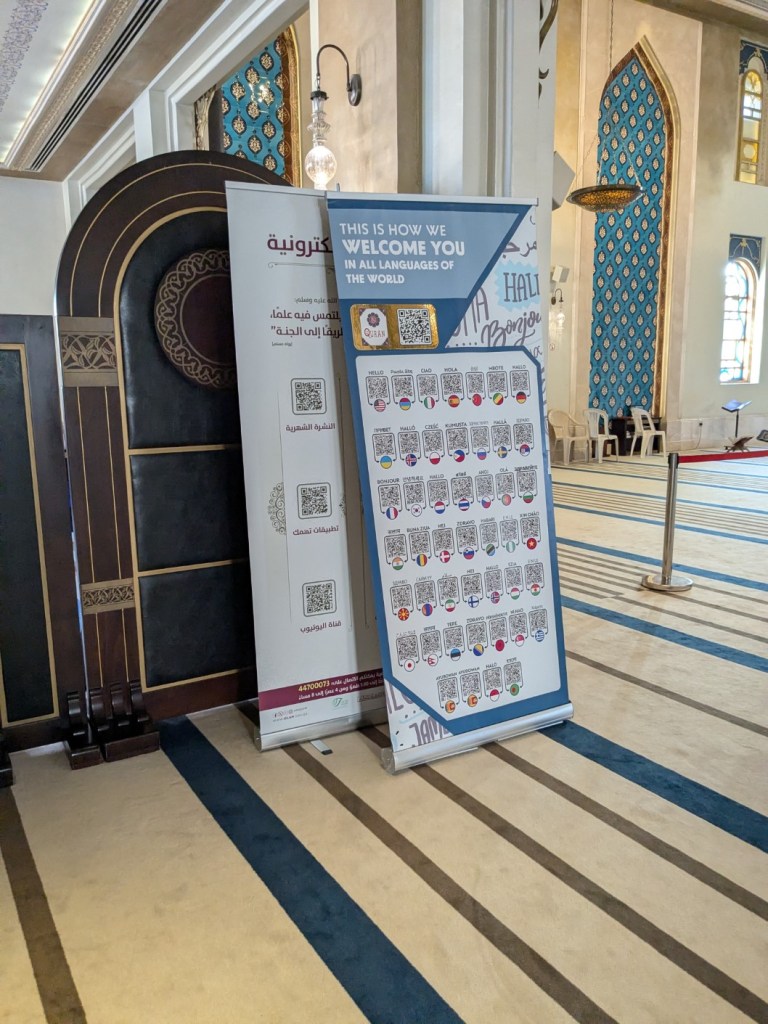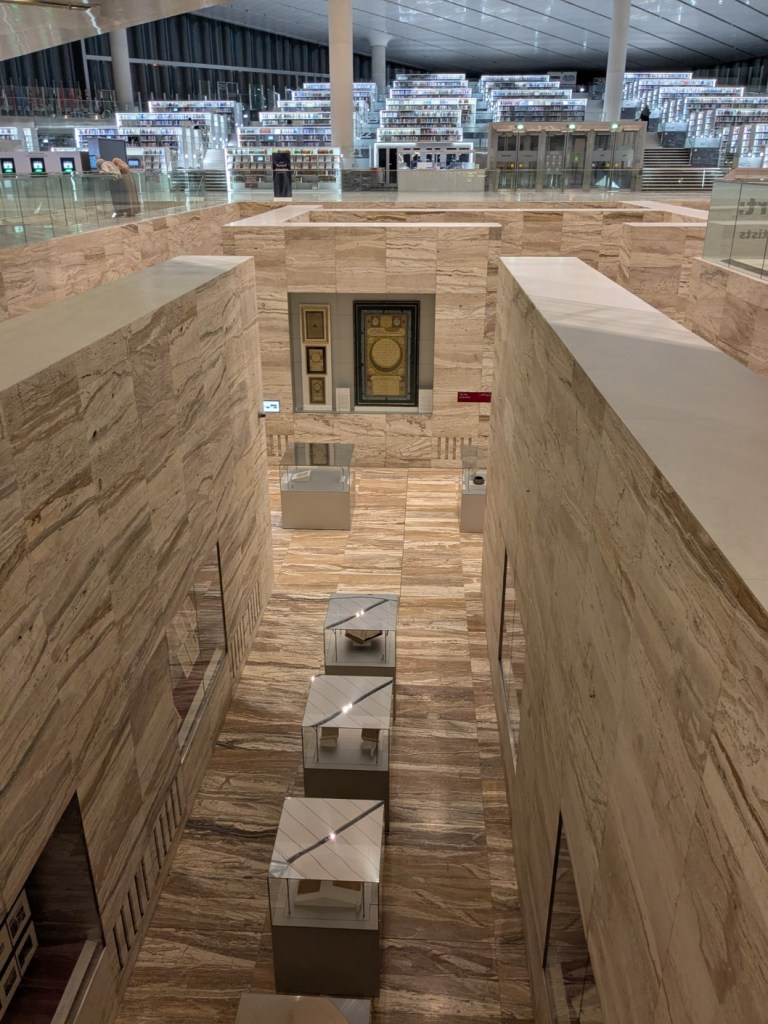 The Education City area is made up of 12 square kilometres, housing numerous institutions, including satellite campuses of eight international universities. Fittingly, it also includes the vast Qatar National Library, which is a dream for book lovers and knowledge seekers. As non-residents, we obviously couldn’t take any books out, but it was an absolute pleasure walking around the many levels and areas of this incredible institution. (Check out this walking tour if you’re curious.) It included a museum display on Arabic literature, including a section on the Maqāmāt al-Ḥarīrī – which includes an entire poem where every verse can be read in both directions.