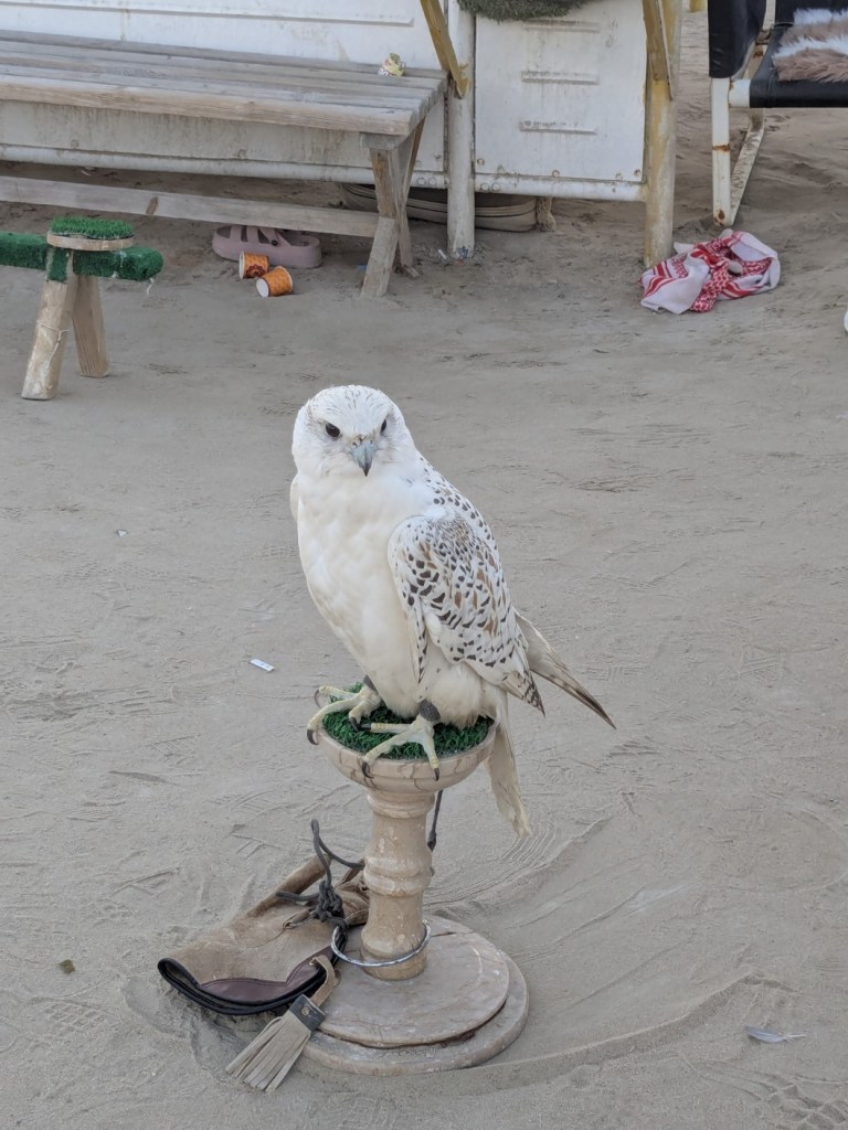 Our last day in Doha – new year’s eve (though, to be honest, dates had lost meaning by then) – was to be the most adventurous of all, with a ‘desert safari’ which covered a camel ride, holding a falcon, quad biking, dune bashing in a 4×4, sandboarding, and a visit to the ‘inland sea’ – where the desert dunes meet the Persian Gulf. The actual dune bashing (see Rio Ferdinand’s reactions here) was the craziest part, and I really don’t know how these guys avoid hitting each other when they drive up and down dunes without being able to see what’s ahead. As a frequent victim of motion sickness, it was all too much for me, and I threw up generously (in a plastic bag in the car) on the way back. It was the second time in 2025, after an unfortunate kayak ride in January that year.