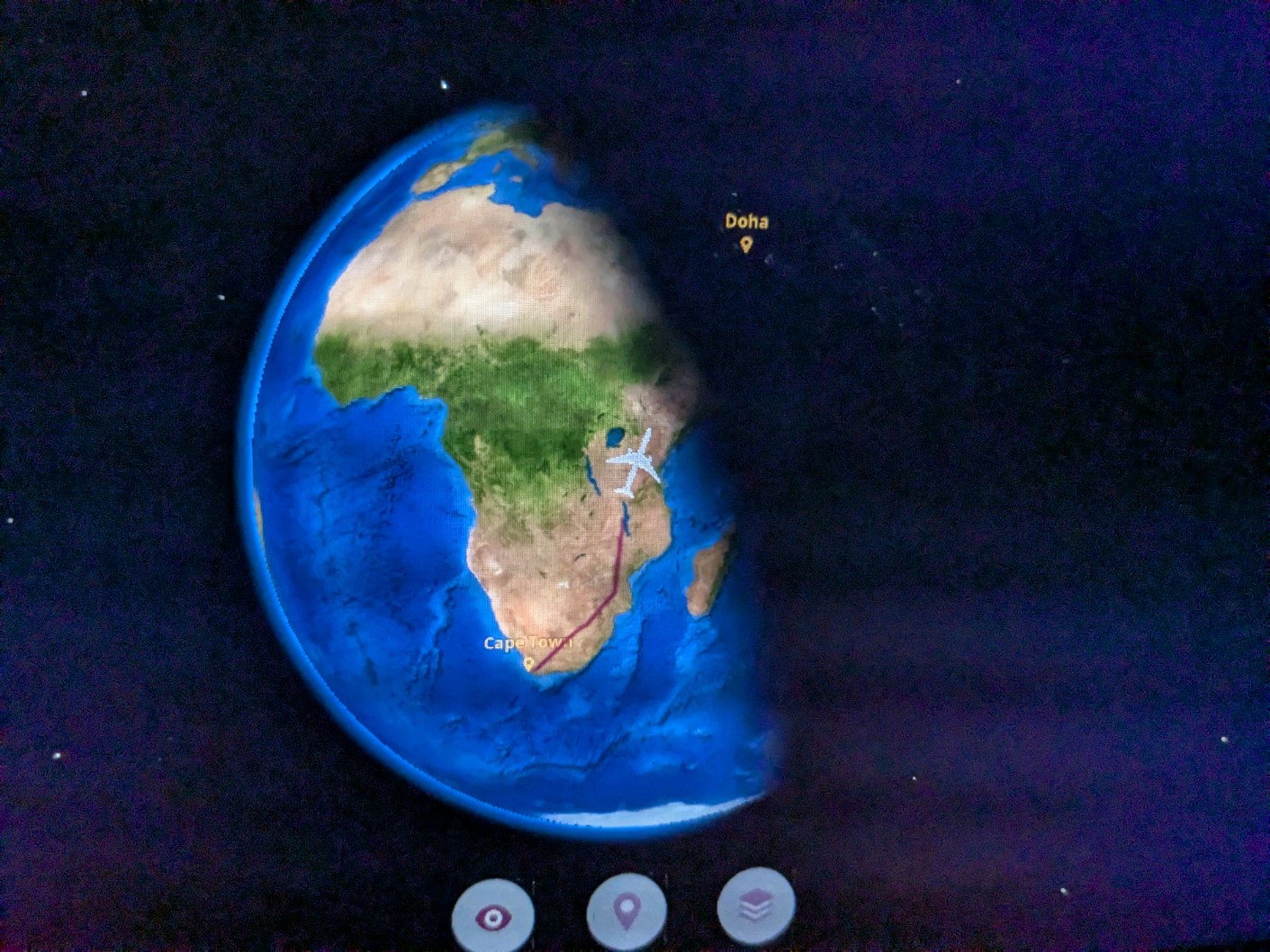 Fast forward to today, and you don’t have to be bored for even a second. On our Qatar Airways plane, each passenger (economy class, in case you’re wondering) had their own personal tablet built into the seat in front of them, with a personal choice of 8000 entertainment options (according Kevin Hart in the safety video). These options included a plethora of movies (in various categories and languages), TV shows, live TV, video games, full music albums, and podcasts. Being an Islamic nation’s carrier, it also included the Holy Quran – both to recite from the screen, and with a choice of audio recordings. There was also information about the destination (and other destinations the airline flies to), a 3D flight map with various views and sets of information, and live views from three cameras outside the plane. And if that wasn’t enough, there was also free, Starlink-provided WiFi to connect your personal device to, so you could remain in constant contact with those on the ground.