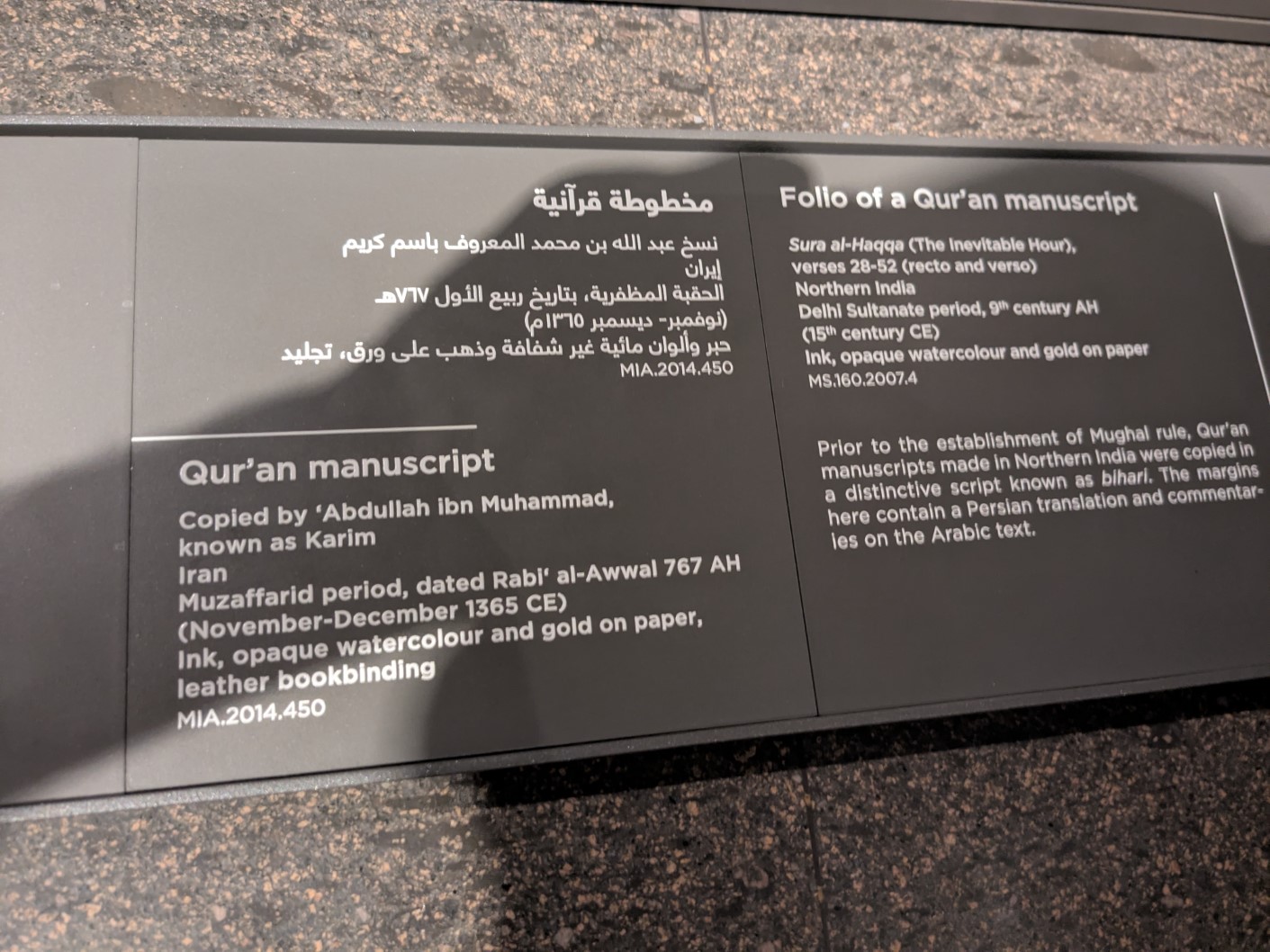 Some of the items on display included ancient texts, handwritten Qurans, jewellery, cooking utensils, and more. What stood out most for me were the numerous ornate pen boxes, highlighting the prominent position of writing in Islamic civilisation, historically.