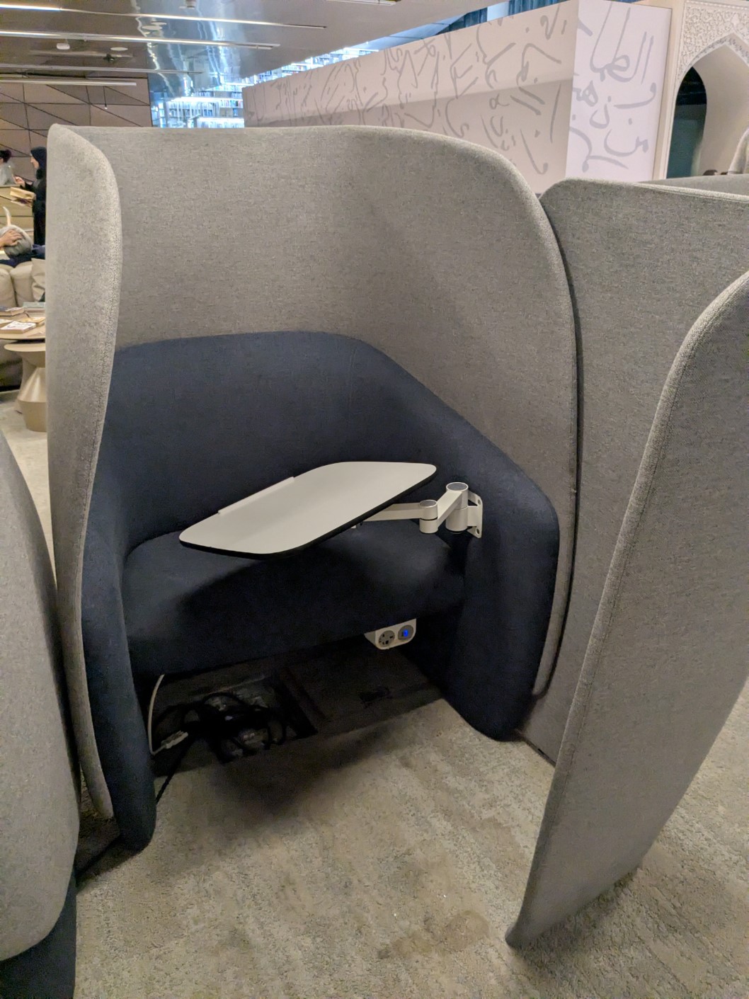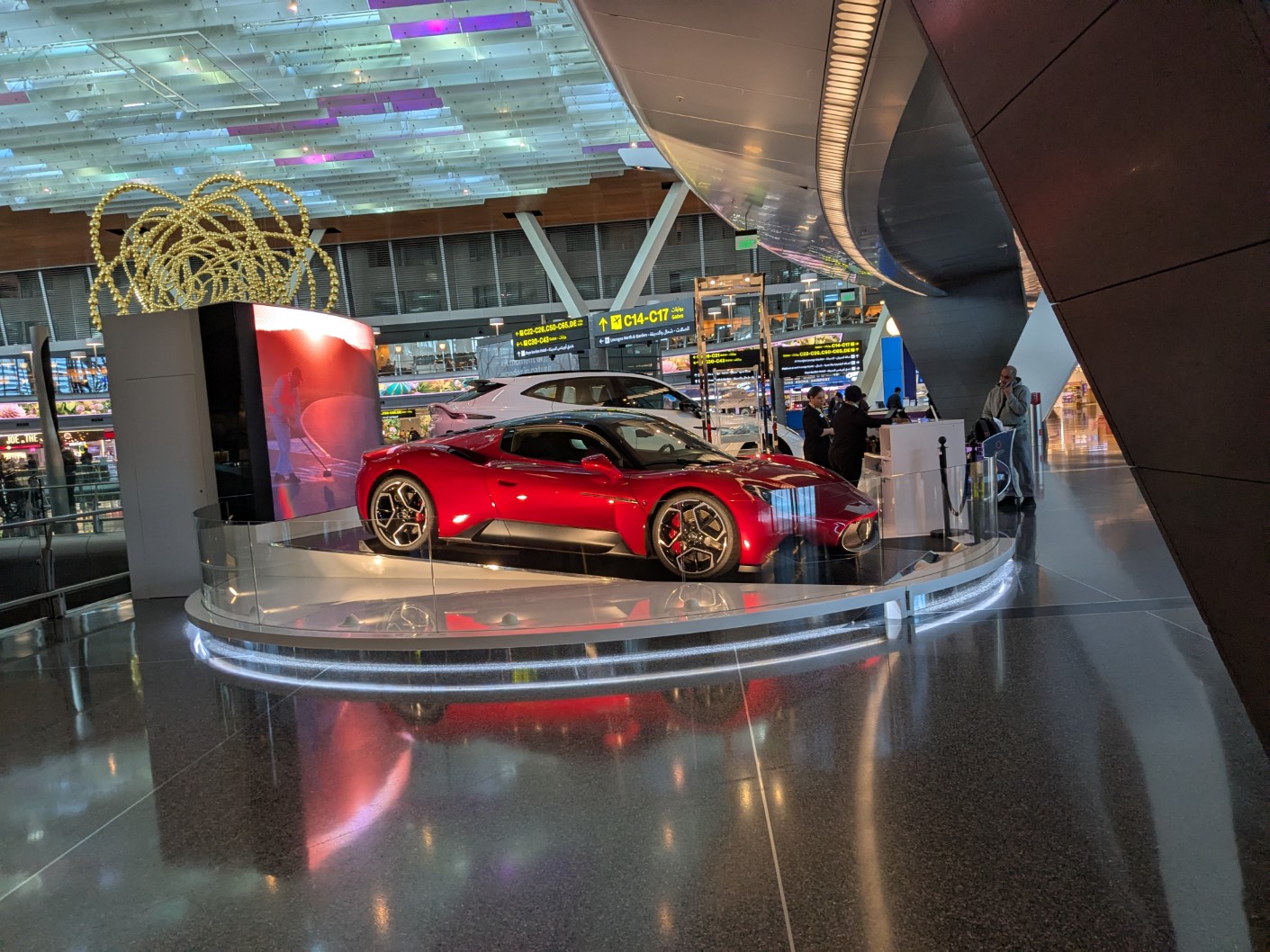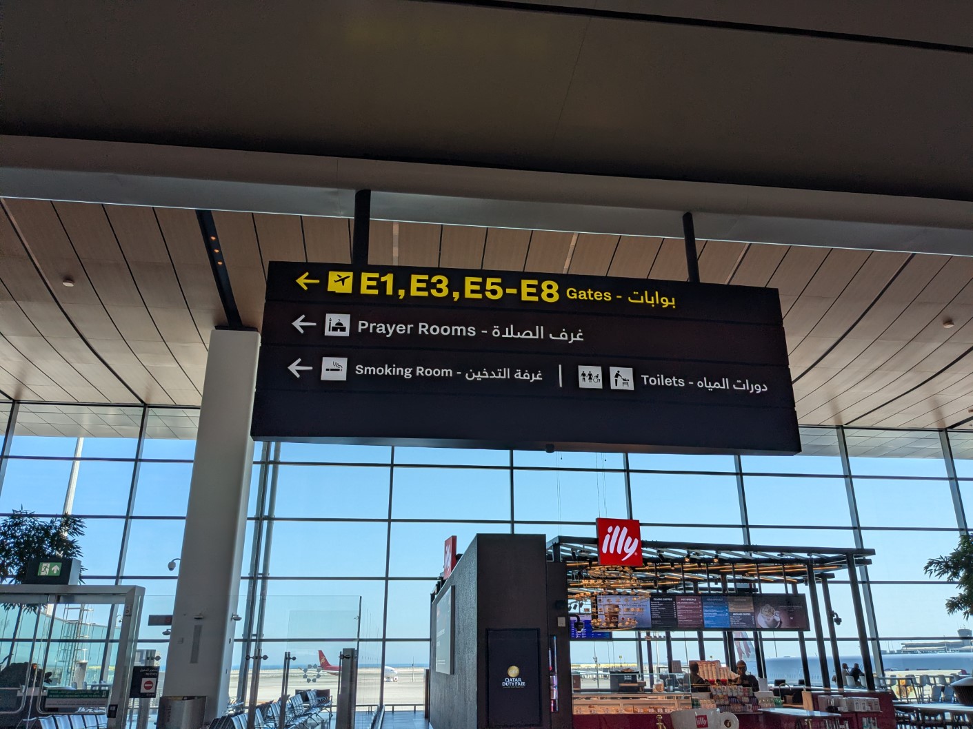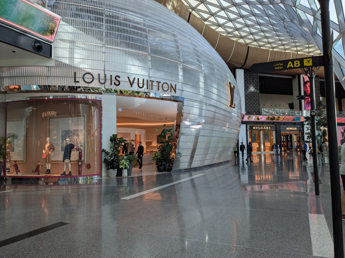 The next morning, we headed out to the astounding Hamad International Airport, which has often been voted as the best airport in the world. It’s huge inside, with shops mirroring the opulence of the city itself. There’s even a tram on the upper level, given the distance between some terminals. (We didn’t get to take it, unfortunately.)