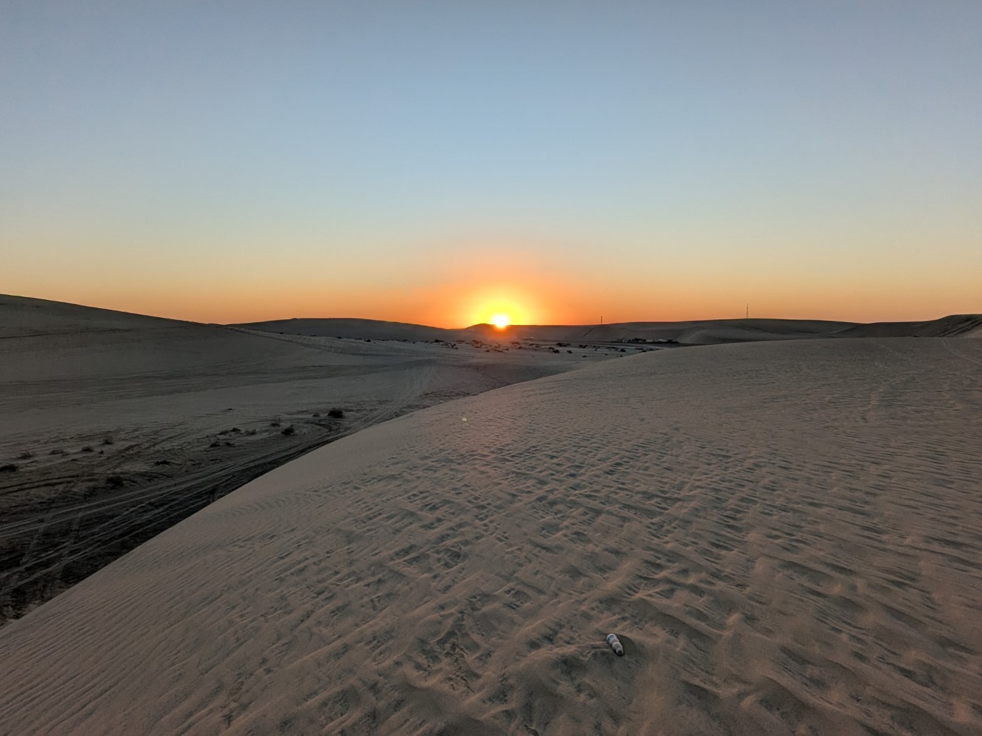 Our last day in Doha – new year’s eve (though, to be honest, dates had lost meaning by then) – was to be the most adventurous of all, with a ‘desert safari’ which covered a camel ride, holding a falcon, quad biking, dune bashing in a 4×4, sandboarding, and a visit to the ‘inland sea’ – where the desert dunes meet the Persian Gulf. The actual dune bashing (see Rio Ferdinand’s reactions here) was the craziest part, and I really don’t know how these guys avoid hitting each other when they drive up and down dunes without being able to see what’s ahead. As a frequent victim of motion sickness, it was all too much for me, and I threw up generously (in a plastic bag in the car) on the way back. It was the second time in 2025, after an unfortunate kayak ride in January that year.