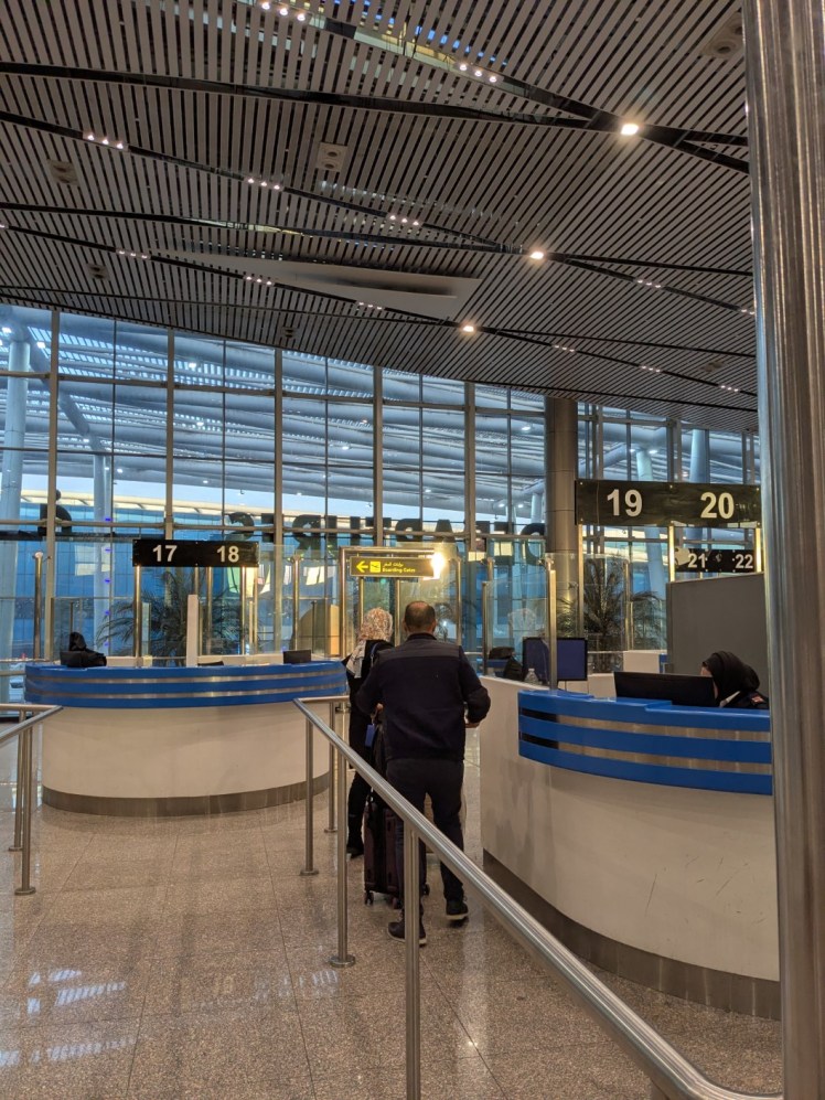 The following day, we headed to the airport in the early afternoon, and I attempted to change the last of our Egyptian pounds back to US dollars. The attendant in the foreign exchange booth told me to “come back one hour” – the third time I’d heard it in Cairo (none of my attempts were ever successful). Later, I felt sorry as I watched another unfortunate traveller standing at this booth, being ignored as he frantically worked inside without so much as an acknowledgement of the person waiting. (She eventually left, empty handed.)